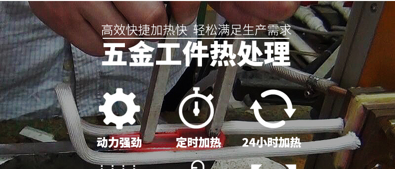 别名Q超高频感应加热?/br> 型号QHTG-20AB 电压Q?80V 功率Q?0KW 用途:该系列设备适合于很多加热途,如:1、硬质合金锯齿焊?、铜接头焊接等3、大轮、大u、轨导等零g热处?、不锈钢或合金钢l丝退火或淬火